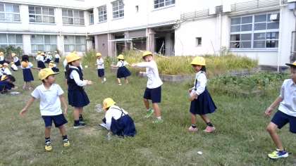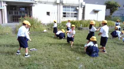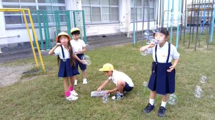 息を吹きかけたり、モールを持ってくるくると回ったりして、シャボン玉をつくっていました。上手にできると、「見て、見て〜!」とうれしそうに見せに来てくれました。