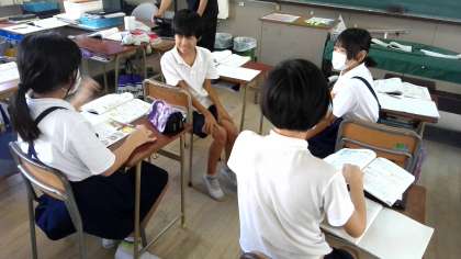 どのようにすれば解けそうか、友だちと相談していました。