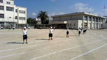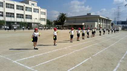 今日は、カラー手袋をはめてダンス!青空に映えてとてもきれい!