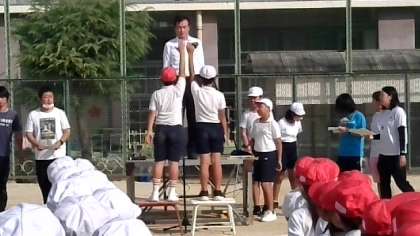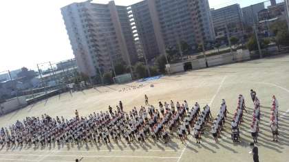 運動会の全体練習です。開会式と閉会式の練習をしました。
