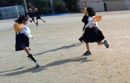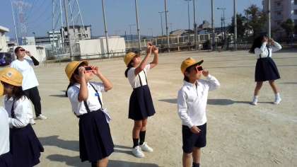 かげつなぎをしたり、かげふみおにごっこをしたり、遮光板で太陽を見たりしていました。