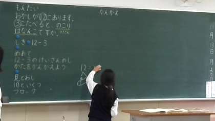 ブロックを使ったり、12を10と2に分けたり、3を2と1に分けたりして考えていました。