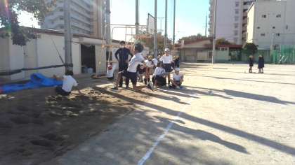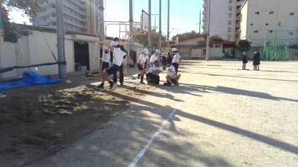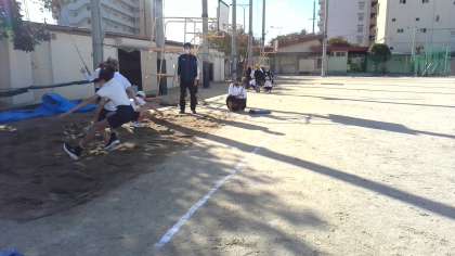 助走をつけてタイミングよく踏み切り、記録を伸ばしていました。