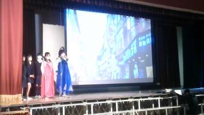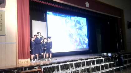 5年生は「長吉東ワールドニュース」で総合学習で調べた国について発表しました。