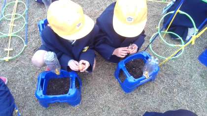 人権啓発活動大阪地域ネットワーク協議会からチューリップの球根をいただきました。その球根を今日は1年生が植えました。