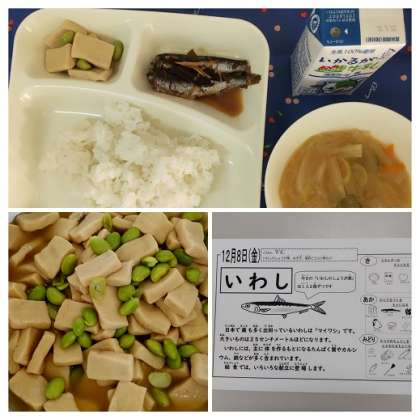 カルシウムたっぷりのいわし、温かいみそ汁、やさしい味に仕上がった高野どうふ!