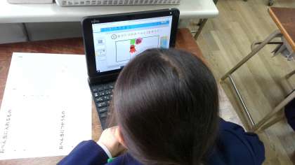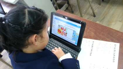 「おべん当に入れるもの」をタブレットでお絵かきしていました。