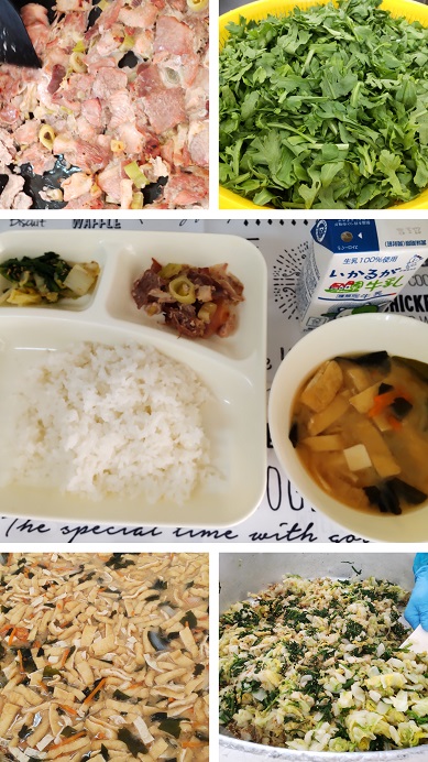 今日の給食では地産地消のひとつとして、大阪で作られたきくなを使っています。