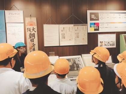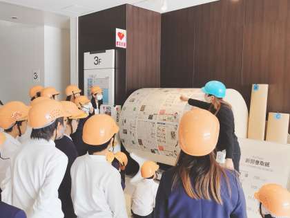 刷りたての新聞がベルトコンベヤーで運ばれる様子や、ロボットが大きな巻取紙を運ぶ様子などを見学させていただきました。(その場所は、撮影禁止でした。)