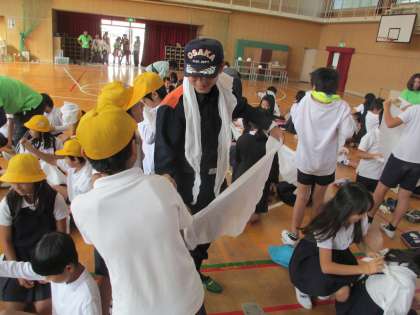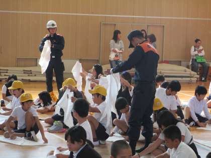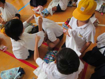 防災訓練 <救急訓練(三角巾)> 5年6年
