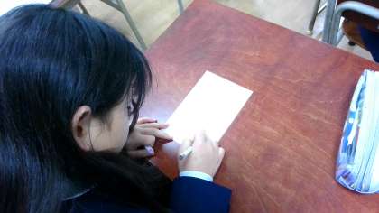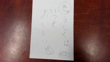 大好きな給食の献立や、調理員さんへの感謝をかるたにしていました。