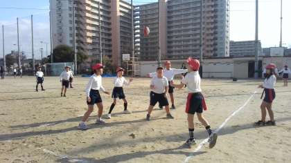 タッグを取られないようにして、ゴールめざしてボールをパスしたり、敵をかわして走りぬけたりしていました。