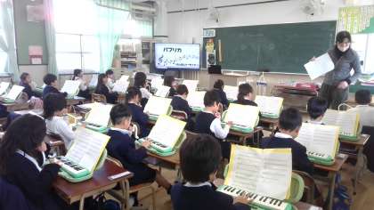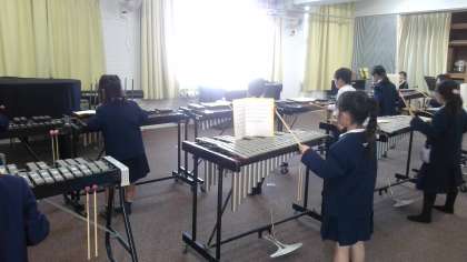 楽譜を見ながら、いっしょうけんめい練習していました。