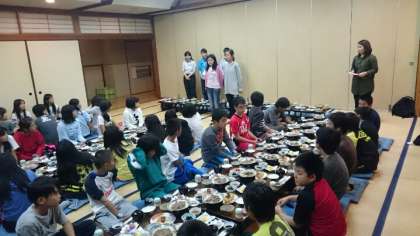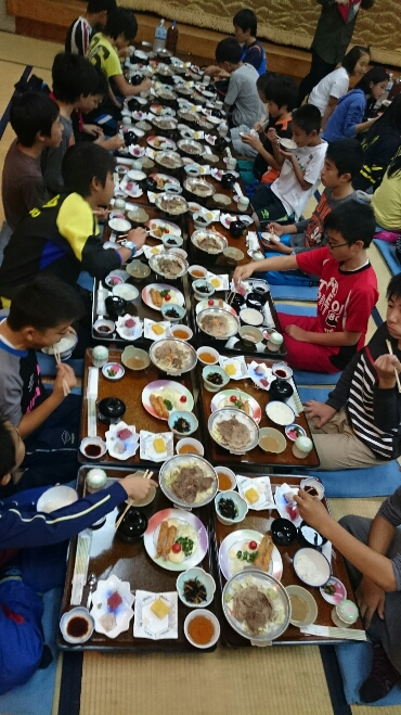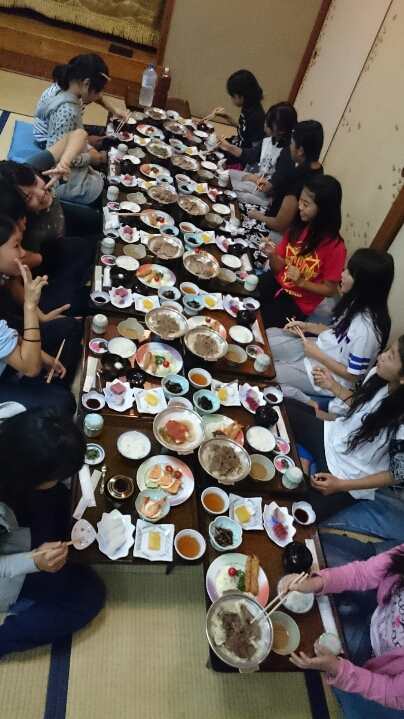 全員そろっての夕食。楽しい修学旅行の宿舎の夜です。この続きはまた明日アップします。