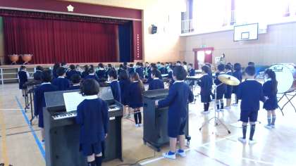 卒業を祝う会に向けての練習です。どの学年も金曜日に向けて練習に取り組んでいます。