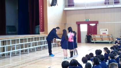 今日の児童朝会では、読書感想文と書道の表彰がありました。