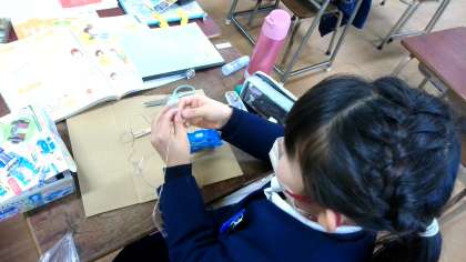 今まで理科で学習したことを活かしたおもちゃを作っていました。