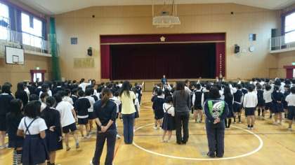 校長先生は、先週修学旅行に行った6年生のことをお話されていました。