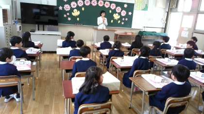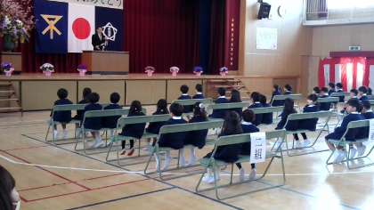 校長先生が「入学おめでとうございます」と言うと「ありがとうございます」と答えたり、
