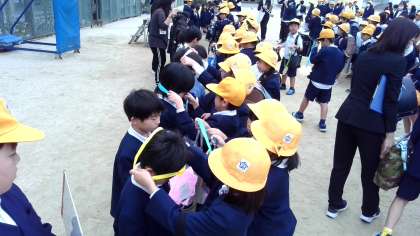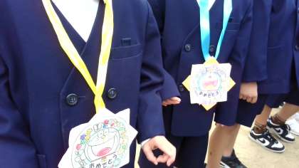 児童代表の言葉の後、学年が1つ上がり、お兄ちゃん、お姉ちゃんになった2年生からメダルのプレゼントがありました。