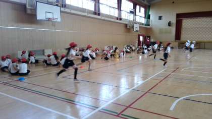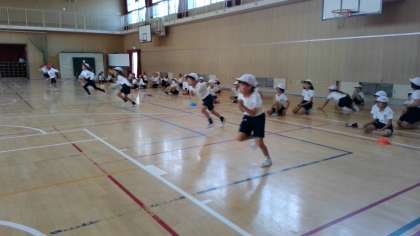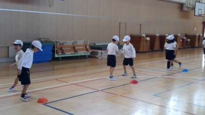 後ろ向きに座った姿勢からスタートしたり、折り返すところでじゃんけんをしたり、楽しみながら走っていました。