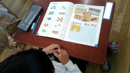 5つのブロックをならべていました。