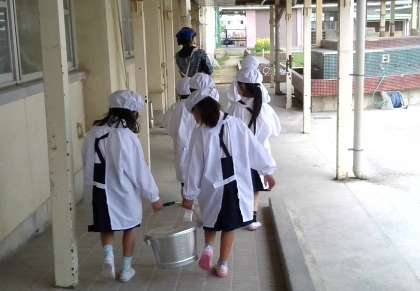 先週まで、6年生が給食を教室まで運んできてくれていましたが、今日からは、自分たちで取りにに行きます!