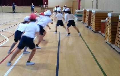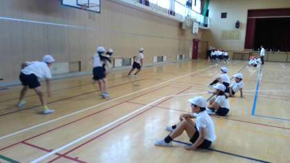 いい記録が出た友だちの跳び方を見て、いいところを探していました。