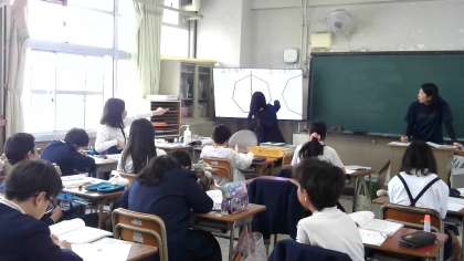 対称の軸や、対称の中心はどこかを大型テレビで確認していました。