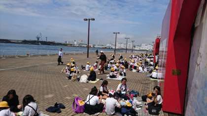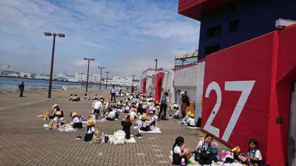 太陽も出てきて、外でお弁当を食べています!