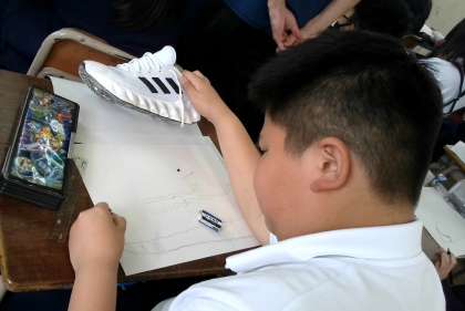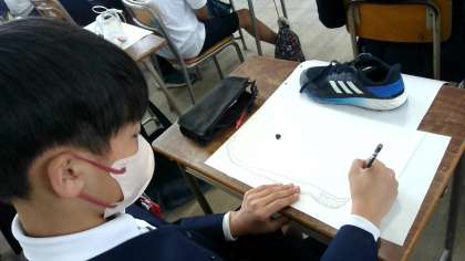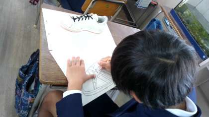 くつをよく見て、集中してかいていました。