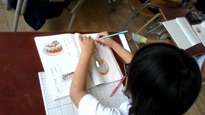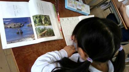 いい姿勢で音読したり、ていねいな字でノートを書いたりしていました。
