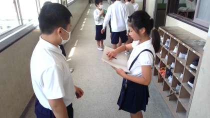「知りたいことを聞き出そう」の学習で、5年生が6年生にインタビューをしていました。