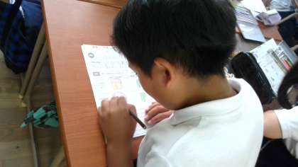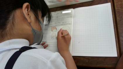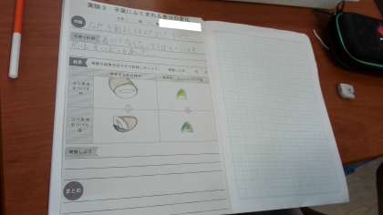 「なぜ、子葉はしぼんでしまったのか」をヨウ素液を使って調べていました。