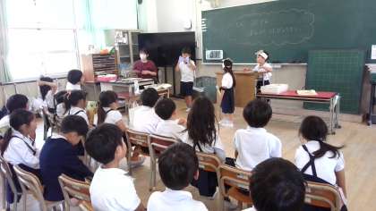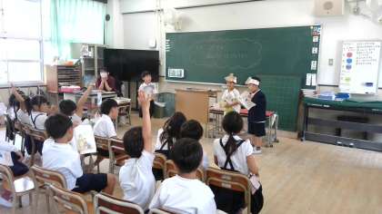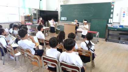 お面やナレーターのリボンをつけて、楽しそうに音読をしていました。
