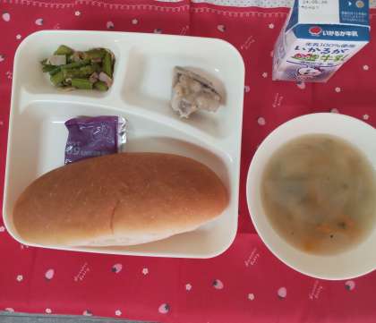 かつおのガーリックマヨネーズ焼きや、スープと一緒にとてもおいしくいただきました。