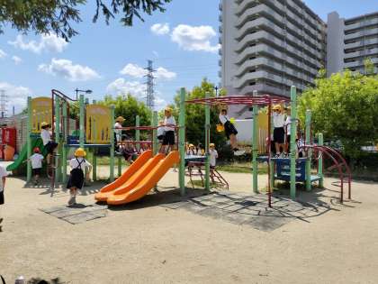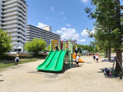 校区たんけんの途中、公園で少し遊びました。