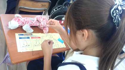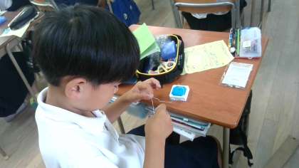 裁ちばさみで布を切ったり、玉結びの練習をしたりしました。