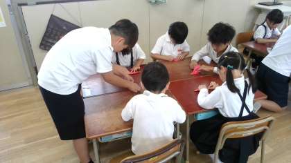 6年生が、各学年の教室に行って、やさしくおりづるの折り方を教えてくれました。