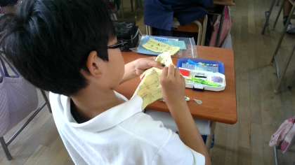 布に書かれた番号を確認しながら、それぞれのぬい方をマスターしていました。