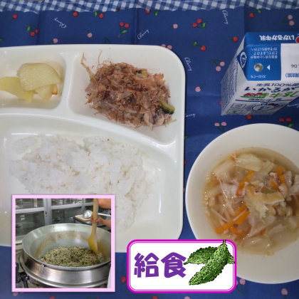 きょうの給食は、ゴーヤを使った「ゴーヤチャンプルー」です。