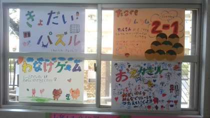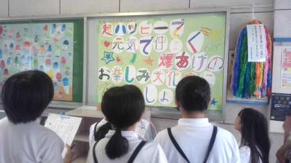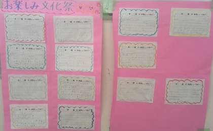 お楽しみ文化祭のめあてやポスターなどが掲示されています。