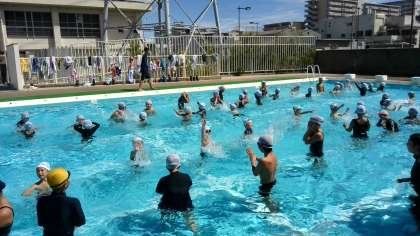 1年生と6年生がペアになって、水かけをしたり、おにごっこをしたりしました。