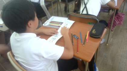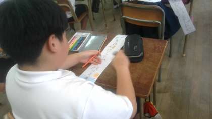 林間に行ったこと、旅行に行ったこと、習いごとのことなど、夏休みの思い出をかいていました。