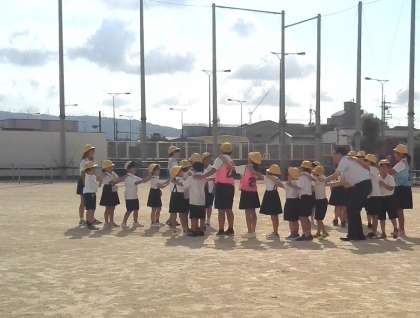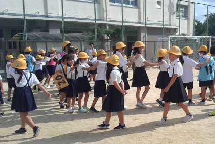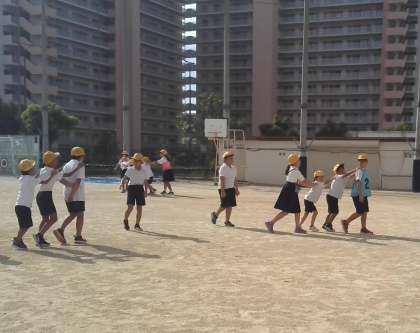 じゃんけんに勝ち続けた人が先頭になって、長い列車ができていました。