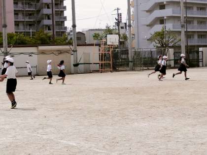 「かげと太陽」の学習です。「かげふみおに」をしていました。おにに自分のかげをふまれないように逃げ回っていました。