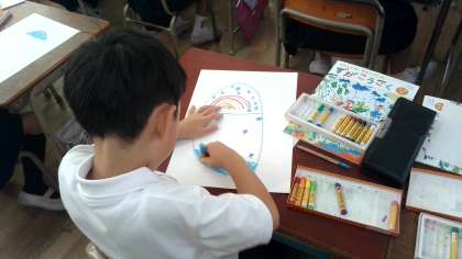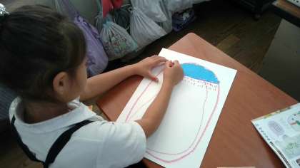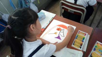 たまごに、空と海や、ハロウィン、花や木など、オリジナルのたまごをかいていました。