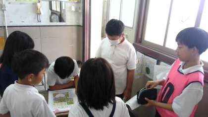 オリエンテーリングを回るためのグループを確認して、係を決めたり、班のめあてを考えたりしました。