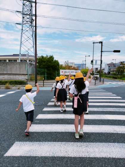 生活科の学習で、グループに分かれて地域にあるお店屋さんや、保育園などにインタビューをしに行きます。