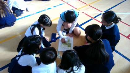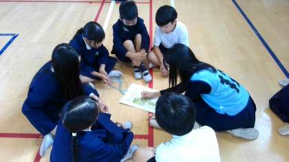 オリエンテーリングの回り方をグループで相談しました。